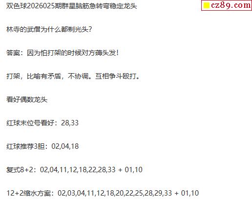 > 26年福彩双色球025期 群星脑筋急转弯定龙头字谜